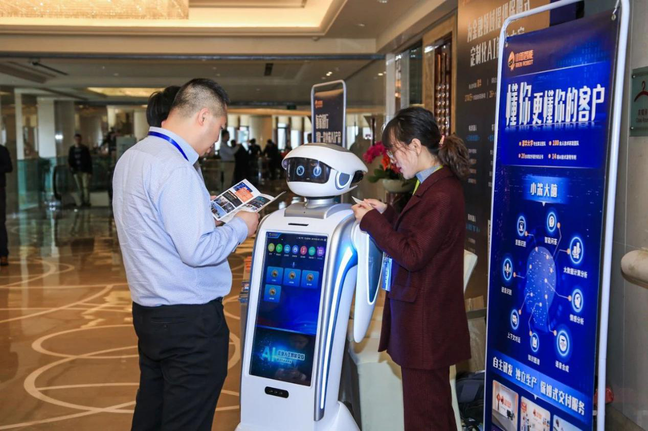 据悉,这位特邀主持人是一款机器人,来自小笨智能。“我们拥有百余人研发团队,并依托清华大学提供的核心技术支撑,自主研发了线上智能客服、线上客服质检平台及服务型机器人三款核心产品,能够为金融领域提供线上线下全面服务。”小笨智能执行总裁杨鹏向与会嘉宾就“机器人在金融领域中的应用”进行了精彩分享。
